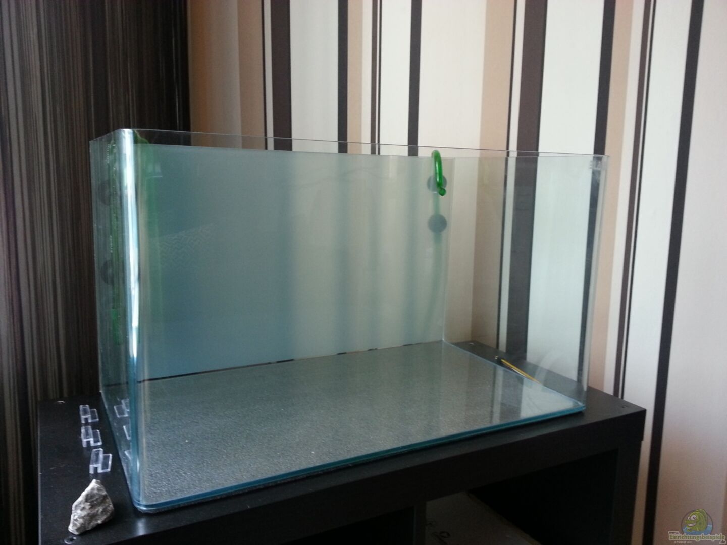Das Becken ist von Blau und hat runde Kanten an der Frontscheibe. An die Rückseite hab ich eine matte Folie geklebt.