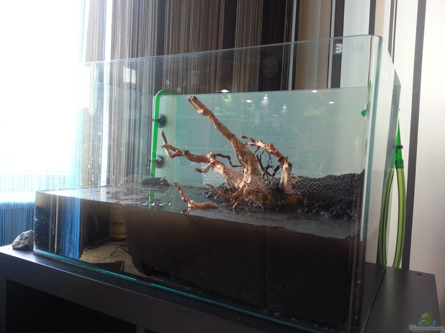 Das Becken ist von Blau und hat runde Kanten an der Frontscheibe. An die Rückseite hab ich eine matte Folie geklebt.