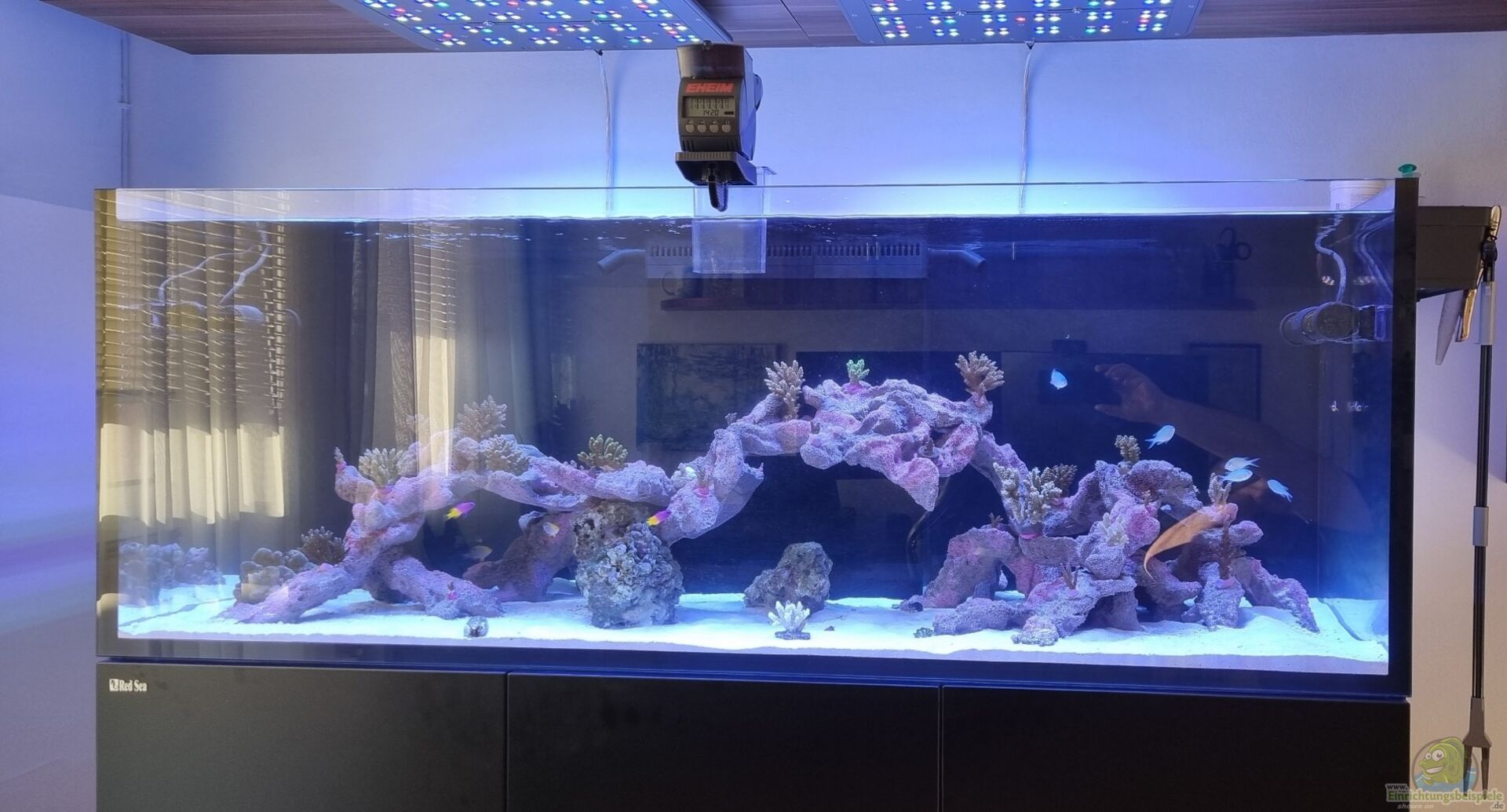 Red Sea Reefer 525 G2+ inkl schwarzem Unterschrank, NUR mit SPS und steht in meinem Büro. Die Versorgung erfolgt durch Oceamo Duo und A&O über den GHL Doser.