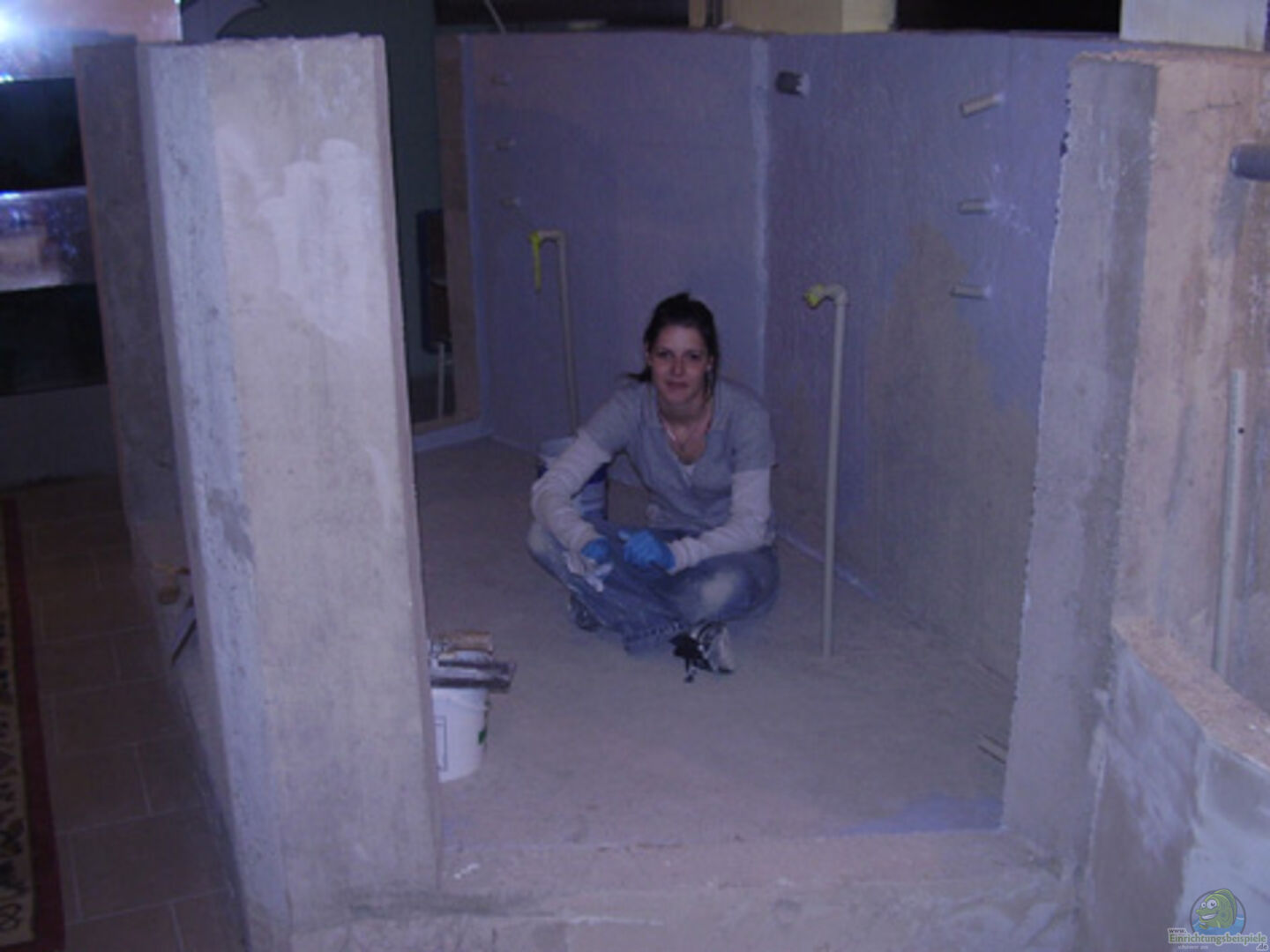 Betonaquarium, ein halbes Achteck, mit drei großen Sichtscheiben, 1x 179x134cm (40mm) und 2x 106x134cm (25mm) das Wasservolumen wurde etwas verkleinert, das Becken ist nicht vollständig gefüllt, der Grund liegt kurz um in den Erhaltungskosten für laufend gute Wasserqualität ;)