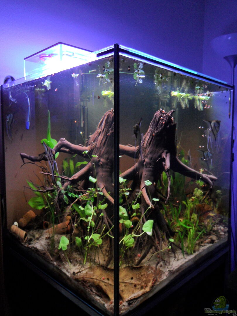 Quadratisch praktisch gut. Abgedeckt mittels Glasscheibe. Das Becken sollte erst ein reines Rio Xingu Aquarium werden. Nachdem ich allerdings die tollen Guyana Skalare bekommen habe wurde entschieden es zu einem Gesellschaftsbecken aus dem Einzugsgebiet des Amazonas zu machen. Die Rückseite ist mit brauner Folie beklebt um eine Tiefenwirkung wie in Schwarzwasser zu erschaffen. Zusätzlich wird das Wasser selbst etwas mittels Huminstoffen aus Laub und Erlenzapfen gefärbt. Zwei Umzüge [...]