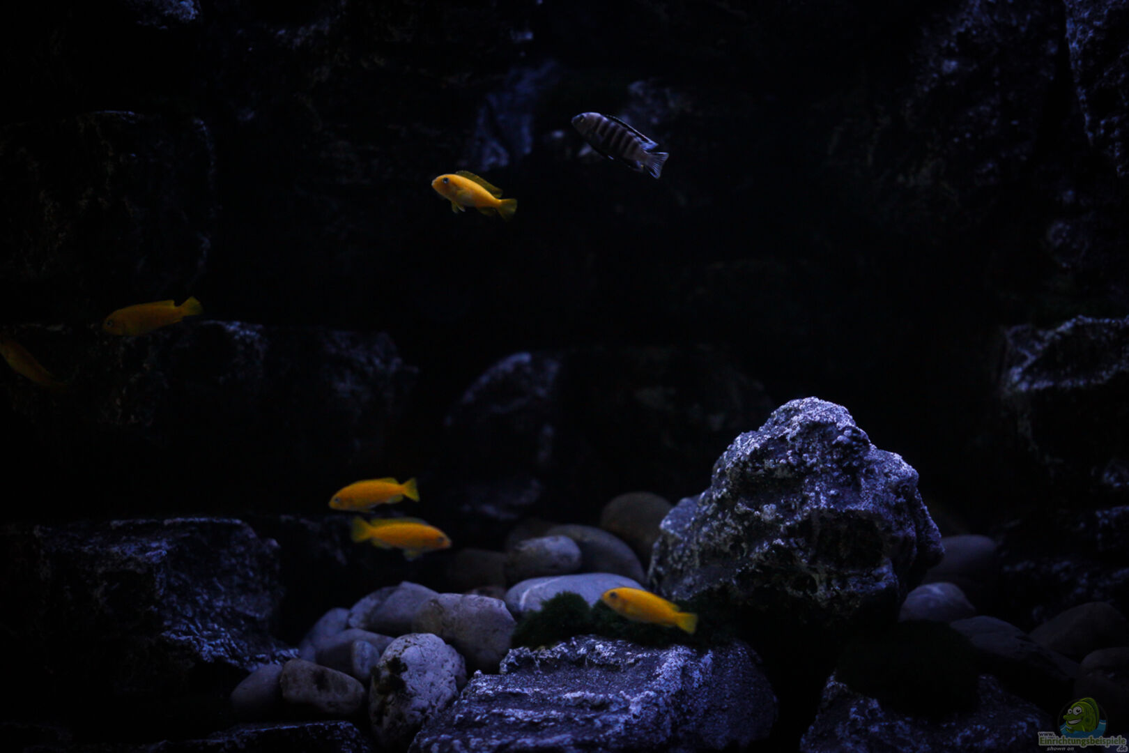 Vom Aquarienbauer incl. Abdeckung. 12mm Floatglas, Wulstverklebt in Schwarz mit Sicherheits-innennaht. Hinten rechts befindet sich ein ??berlaufschacht mit zwei Kammern und abnehmbaren Kamm. Die Frontscheibe aus Wei??glas hat ein eher seltenes Seitenverhältniss von 100cm x70cm. Das ist eine recht kurze Kantenlänge, aber die Nische in der das AQ steht hat leider nicht mehr zugelassen. Die 70 für die Höhe waren vorallem eine ästhetische Entscheidung, das mehr an Wasservolumen sollte [...]