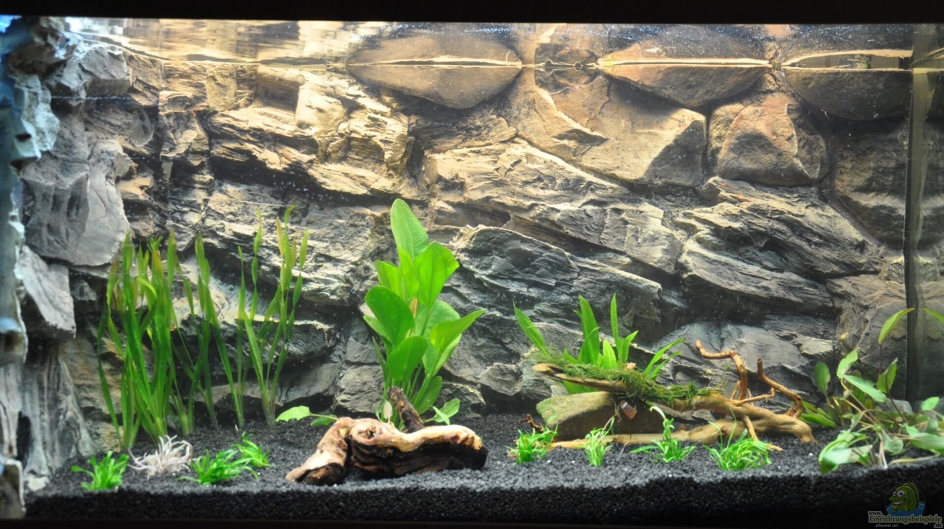 selbst eingeklebter Bio-Innenfilter, bestehend aus vier Kammern Volumen ca. 20l 1. Kammer grober Filterschaum 2. Kammer feiner Filterschaum 3. Kammer ca. 4, 5l Siporax 4. Kammer Pumpenkammer Pumpe Eheim Pickup 160 500l/h Rückfluss ins Becken über 25mm-KG-Rohr (die passen genau in den Eheim Pickup) GFK-Rückwand