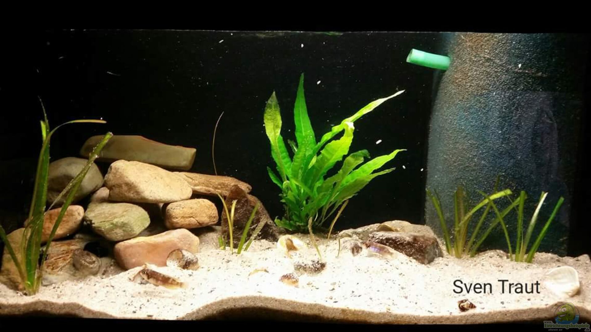 Standar Glasbecken der Firma Eheim.Die Rück und Seitenscheiben habe ich mit schwarzer Tafelfolie beklebt.Als Abdeckung nutze ich nur eine Glasscheibe.