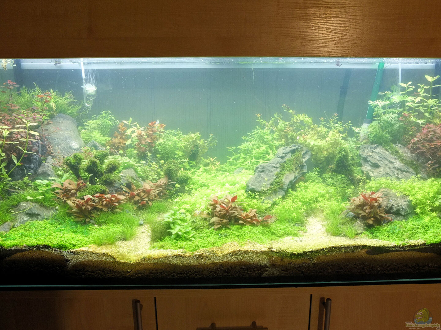 Aquarium 130x60x50 mit geschlossenem Leuchtenkasten in der Farbe des Aquariumschrankes. Aquariumunterschrank mit zwei Türen und drei Schubladen, Farbe Ahorn hell. Habe mich für ein 60 cm breites Becken entschieden, da man damit eine grö??ere Tiefenwirkug erziehlen kann.