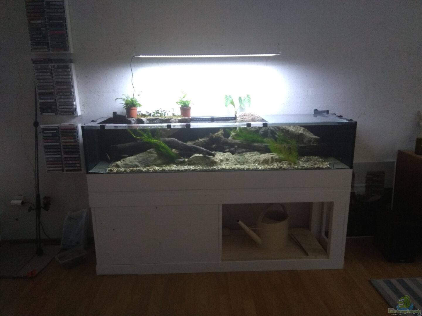 Das hier vorgestellte Aquarium ist ein Strömungsbecken mit unidirektionaler Strömung für Regenbogenelritzen. Es soll einen Bachlauf möglichst naturnah nachbilden. Das Becken wird ohne Heizung, d.h. bei Zimmertemperatur betrieben. Um eine gleichmä??ige Strömung in nur eine Richtung zu ermöglichen, besitzt das Becken mit den Ma??en 160x40x40 einen doppelten Boden in 10 cm Höhe und auf 140 cm Länge. Auf beiden Seiten entsteht dadurch ein jeweils 10 cm gro??er Ansaug- bzw. Ausstrombereich [...]