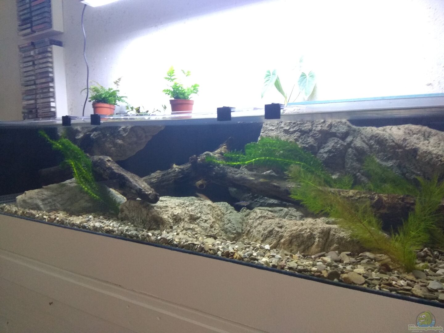 Das hier vorgestellte Aquarium ist ein Strömungsbecken mit unidirektionaler Strömung für Regenbogenelritzen. Es soll einen Bachlauf möglichst naturnah nachbilden. Das Becken wird ohne Heizung, d.h. bei Zimmertemperatur betrieben. Um eine gleichmä??ige Strömung in nur eine Richtung zu ermöglichen, besitzt das Becken mit den Ma??en 160x40x40 einen doppelten Boden in 10 cm Höhe und auf 140 cm Länge. Auf beiden Seiten entsteht dadurch ein jeweils 10 cm gro??er Ansaug- bzw. Ausstrombereich [...]