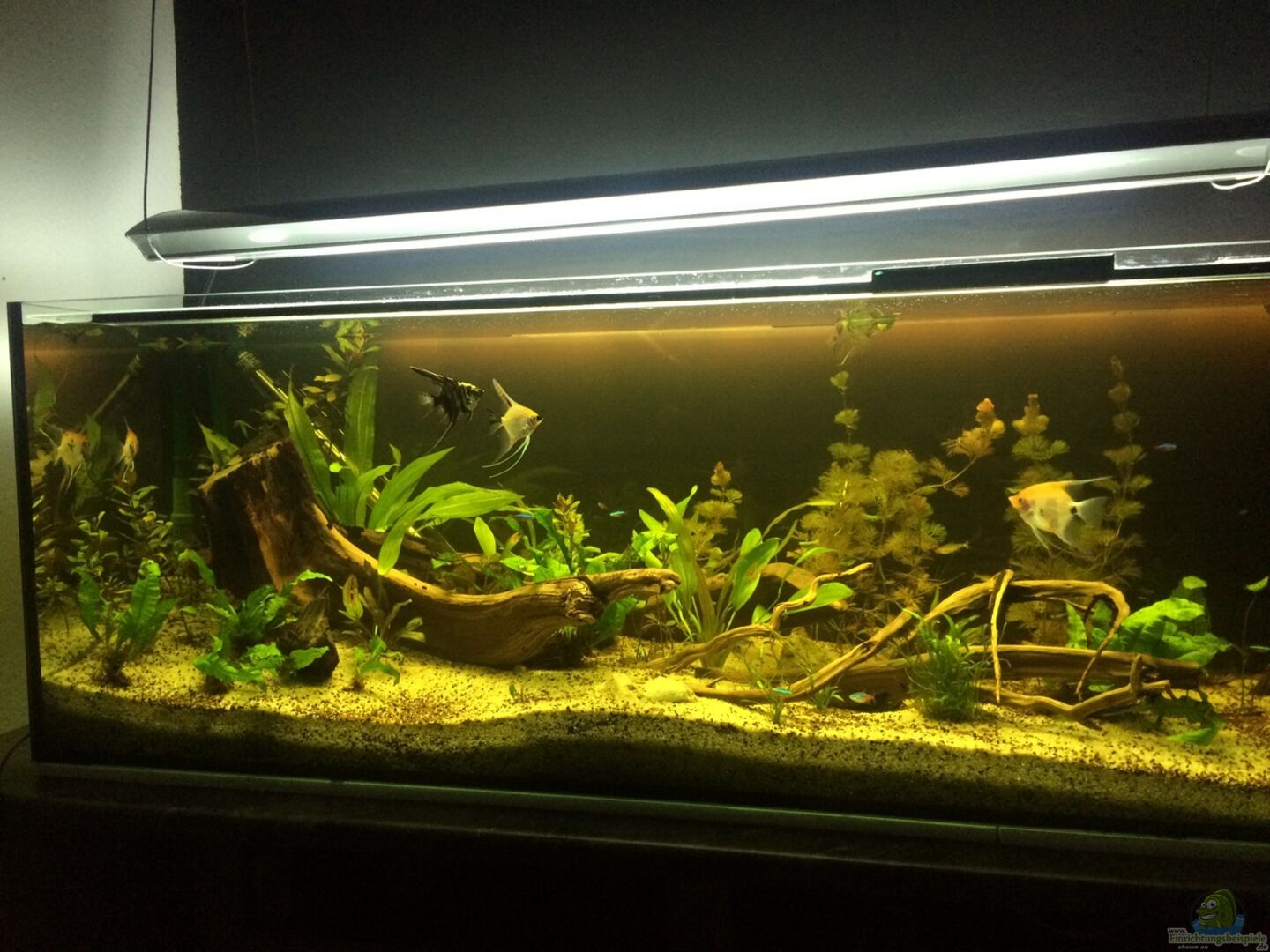 Bio CO2 Anlage mit 8 L Druckbehälter und eine Druckanzeige. Becken nicht komplett beleuchtet.