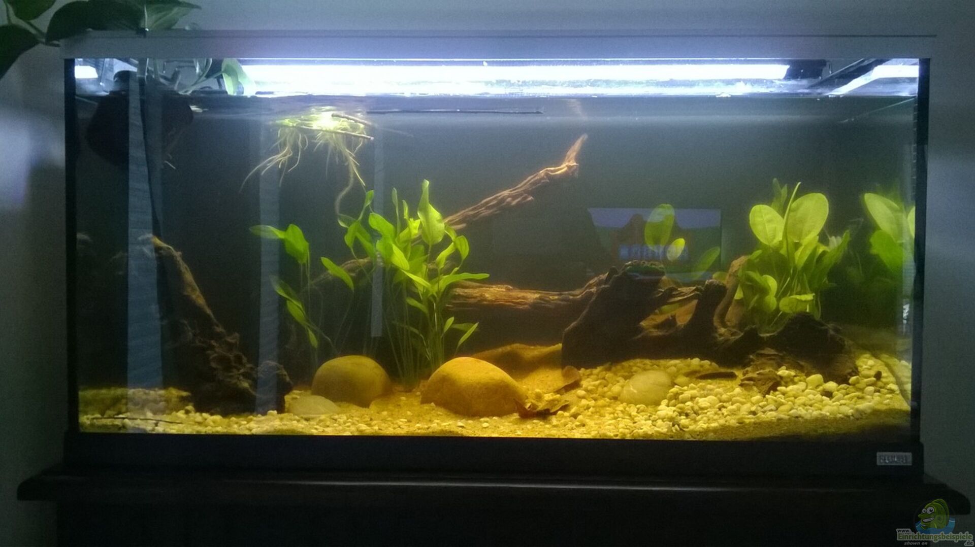 Das Becken ist ein Fluval Roma 200. Habe die werkseitig mit Silikon verklebte Abdeckung entfernt und den oberen Beckenrand mit eloxiertem Aluminium Profilen verblendet.