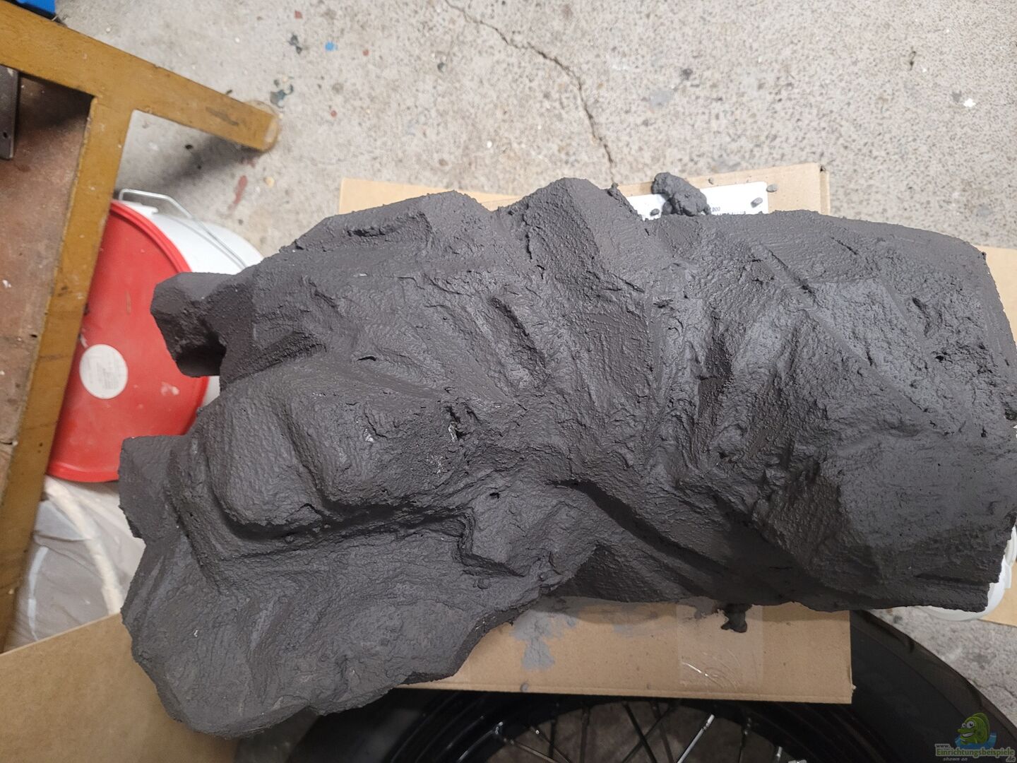 Selbstgebaute Rückwand und Module aus Styrodur und 10kg Silbermanns Scaper Cement sowie 10 Rockzolid Komodo Riverstones. In der Rückwand und ebenso in den Modulen sind Betongewichte verbaut und vergossen, im den Auftrieb deutlich zu verringern. Verklebt wurde das ganze dann mit dem Kompositkleber von Back to Nature. Effektiv blieben vom ursprünglichen Beckeninhalt dann etwa 200l netto übrig. Die Rückwand ist wesentlich schlanker, als sie rüberkommt. Sollte auf den Bildern mit dem Cuttermesser [...]