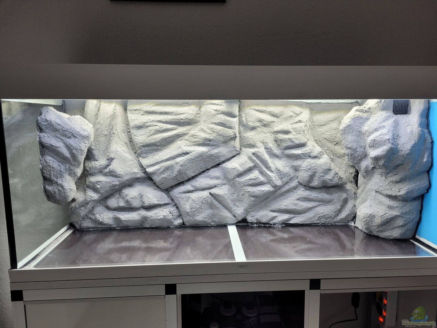 Selbstgebaute Rückwand und Module aus Styrodur und 10kg Silbermanns Scaper Cement sowie 10 Rockzolid Komodo Riverstones. In der Rückwand und ebenso in den Modulen sind Betongewichte verbaut und vergossen, im den Auftrieb deutlich zu verringern. Verklebt wurde das ganze dann mit dem Kompositkleber von Back to Nature. Effektiv blieben vom ursprünglichen Beckeninhalt dann etwa 200l netto übrig. Die Rückwand ist wesentlich schlanker, als sie rüberkommt. Sollte auf den Bildern mit dem Cuttermesser [...]
