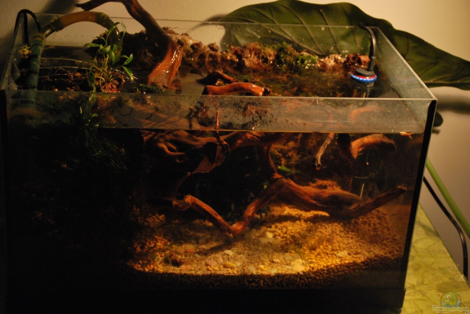 4mm glass basin, put together with black silicone, bottom frame made of black aluminum without a cover. Rear wall: volcanic rock of approximately 2 cm with blond peat fixed with silicone in the front. The volcanic rock is combined with quick cement on the back and rigid green plastic mesh. We want to highlight that the main advantage of volcanic rock is its high porosity that allows the establishment of a good bacterial colony. It has the disadvantage that it is very rough and can [...]