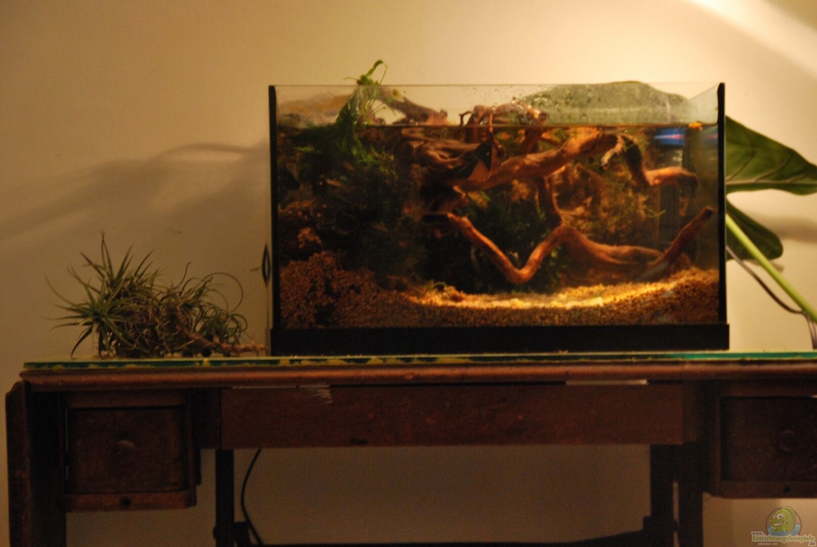 4mm glass basin, put together with black silicone, bottom frame made of black aluminum without a cover. Rear wall: volcanic rock of approximately 2 cm with blond peat fixed with silicone in the front. The volcanic rock is combined with quick cement on the back and rigid green plastic mesh. We want to highlight that the main advantage of volcanic rock is its high porosity that allows the establishment of a good bacterial colony. It has the disadvantage that it is very rough and can [...]