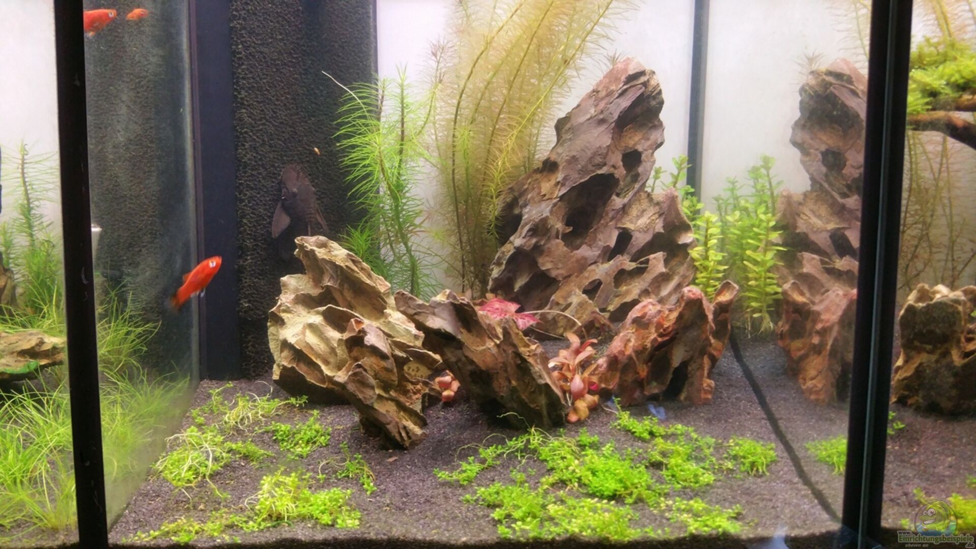 Hallo, Ich habe hir zwei 60x30x35 Aquarien zusammen gestellt in beiden habe ich eine trennscheibe in die mitte eingesetzt die aber nur 23cm lang ist und so mit micht ganz das Becken trennt. Habe dann an der Rückwand und der Mittelscheibe 2cm Plastikwinkel befestigt 4cm Schwarze Filtermatte in Form gebracht im unteren teit geteilt damit wenn ich sie mal auswaschen muss der Bodengrund nicht weg rutscht. Auserdem muste ich die Glasstreifen für die abdekung da wo der Filter ist heraustrenn um [...]