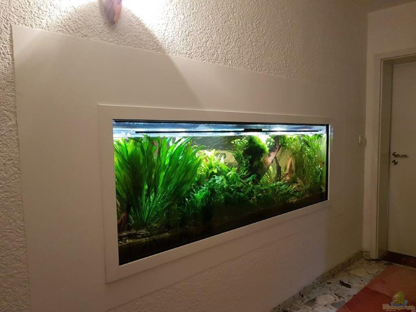 Einbauaquarium in einer Wand zwischen Küche und Treppenhaus, beidseitig einsehbar Das Aquarium liegt je zur Hälfte auf dem Unterschrank (Küchenseite) und dem Mauerdurchbruch auf. Es schlie??t zum Treppenhaus bündig mit der Wand ab und steht auf der anderen Seite in die Küche ca. 30 cm in den Raum hinein. Vor dem Wanddurchbruch (Hohlblocksteine) wurde zuerst einseitig das erste Sturzprofil (Doppel-T- bzw. I-Träger) in die Wand eingebracht, danach dass Gleiche auf der anderen Seite. Erst [...]