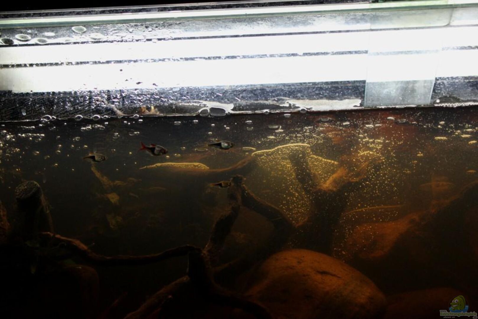 Tank Sirocco Glass of 8 mm, Front optical glass Lower frame: black aluminum Cover with transparent methacrylate Rear and side walls covered with brown cardboard 34 cm water column Effective volume 200 liters aprox. Objective: The wood has a major role in the chemistry of this aquarium. The wood is harvested from a continental Mediterranean climax forest of holm oaks. The tannins were diluted in the aquarium water to recreate the atmosphere of ecosystems of black water streams [...]