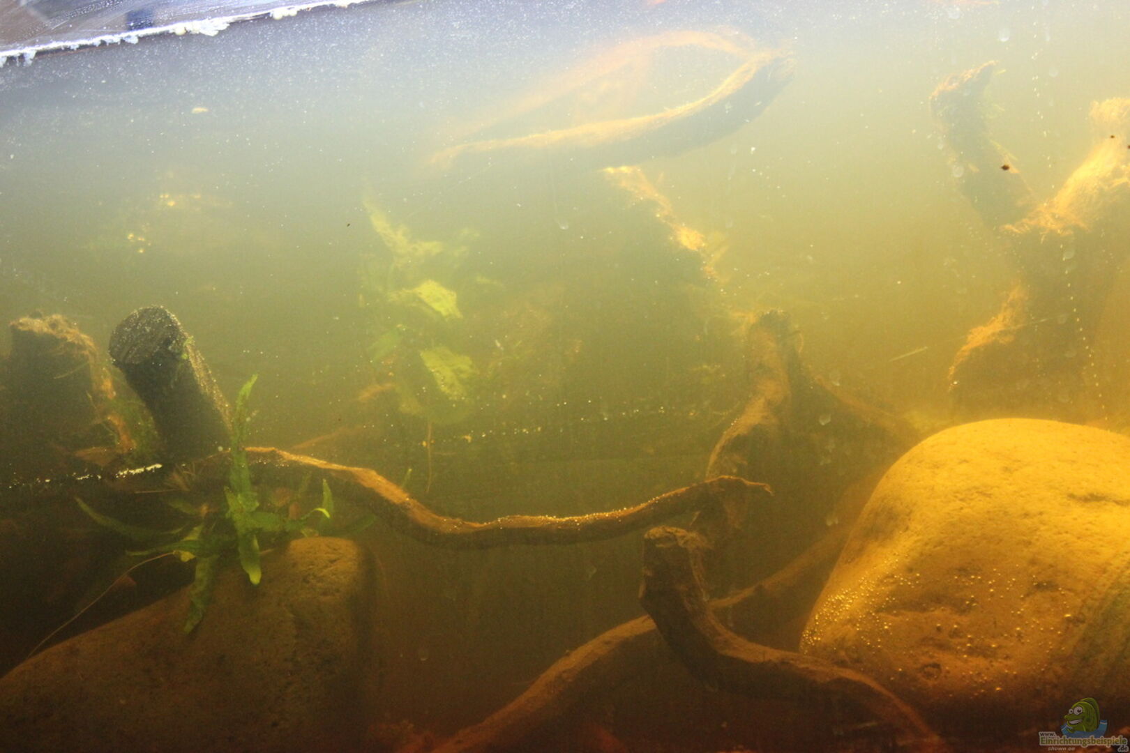 Tank Sirocco Glass of 8 mm, Front optical glass Lower frame: black aluminum Cover with transparent methacrylate Rear and side walls covered with brown cardboard 34 cm water column Effective volume 200 liters aprox. Objective: The wood has a major role in the chemistry of this aquarium. The wood is harvested from a continental Mediterranean climax forest of holm oaks. The tannins were diluted in the aquarium water to recreate the atmosphere of ecosystems of black water streams [...]