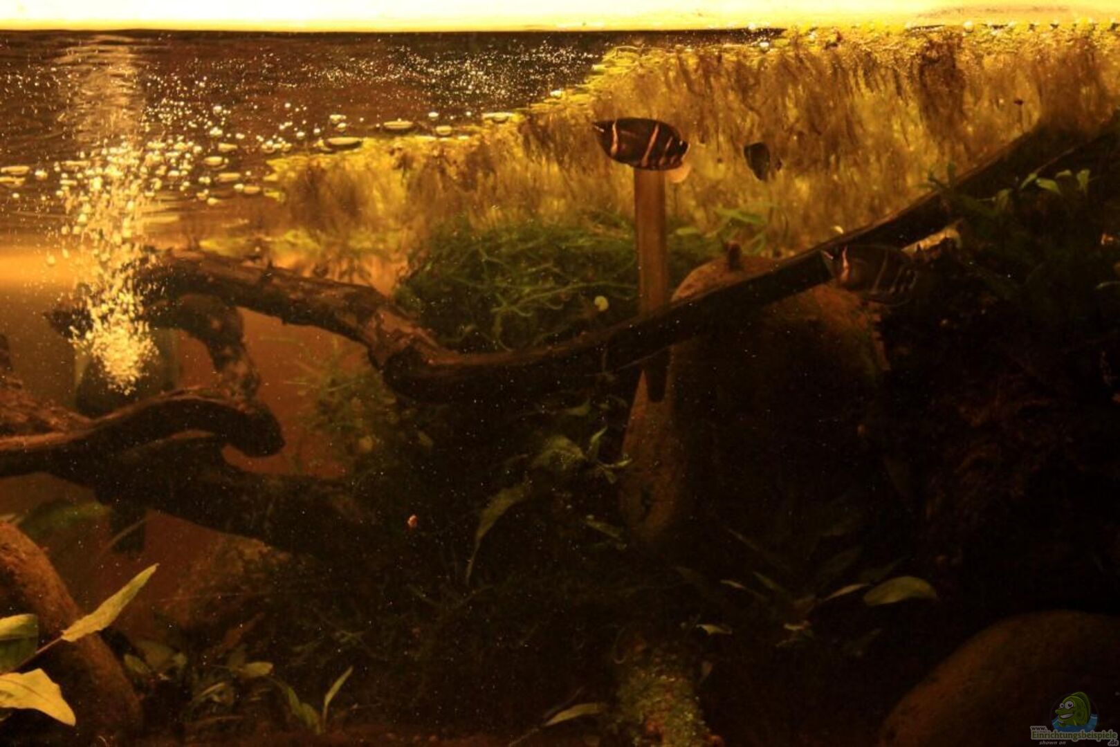 Tank Sirocco Glass of 8 mm, Front optical glass Lower frame: black aluminum Cover with transparent methacrylate Rear and side walls covered with brown cardboard 34 cm water column Effective volume 200 liters aprox. Objective: The wood has a major role in the chemistry of this aquarium. The wood is harvested from a continental Mediterranean climax forest of holm oaks. The tannins were diluted in the aquarium water to recreate the atmosphere of ecosystems of black water streams [...]