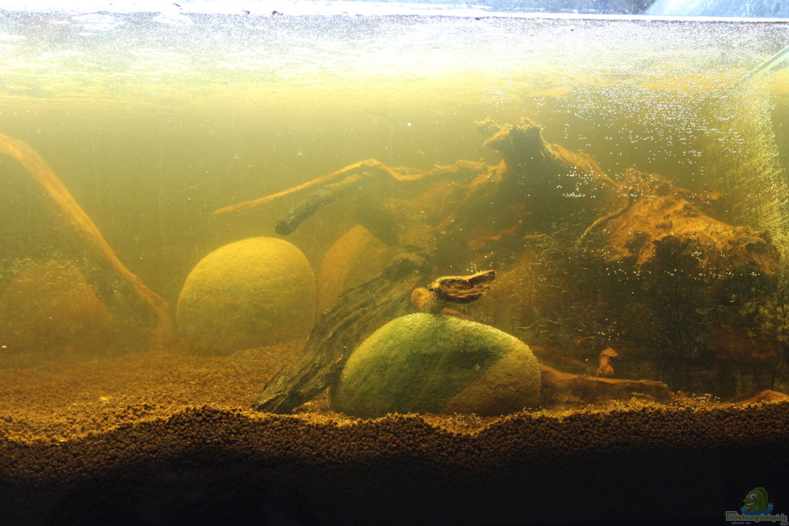 Tank Sirocco Glass of 8 mm, Front optical glass Lower frame: black aluminum Cover with transparent methacrylate Rear and side walls covered with brown cardboard 34 cm water column Effective volume 200 liters aprox. Objective: The wood has a major role in the chemistry of this aquarium. The wood is harvested from a continental Mediterranean climax forest of holm oaks. The tannins were diluted in the aquarium water to recreate the atmosphere of ecosystems of black water streams [...]