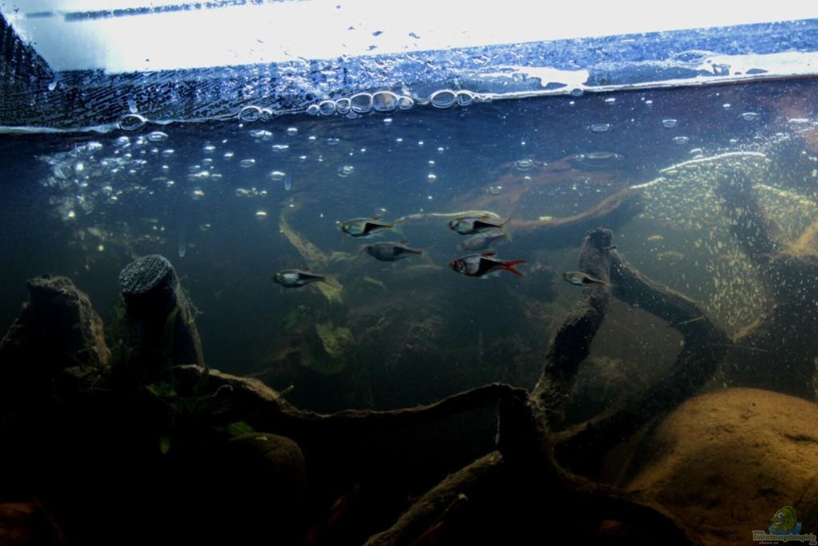 Tank Sirocco Glass of 8 mm, Front optical glass Lower frame: black aluminum Cover with transparent methacrylate Rear and side walls covered with brown cardboard 34 cm water column Effective volume 200 liters aprox. Objective: The wood has a major role in the chemistry of this aquarium. The wood is harvested from a continental Mediterranean climax forest of holm oaks. The tannins were diluted in the aquarium water to recreate the atmosphere of ecosystems of black water streams [...]