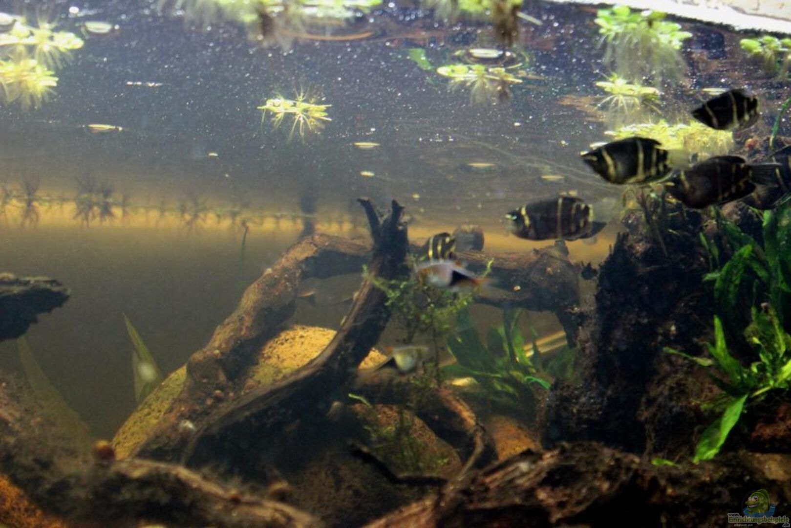 Tank Sirocco Glass of 8 mm, Front optical glass Lower frame: black aluminum Cover with transparent methacrylate Rear and side walls covered with brown cardboard 34 cm water column Effective volume 200 liters aprox. Objective: The wood has a major role in the chemistry of this aquarium. The wood is harvested from a continental Mediterranean climax forest of holm oaks. The tannins were diluted in the aquarium water to recreate the atmosphere of ecosystems of black water streams [...]