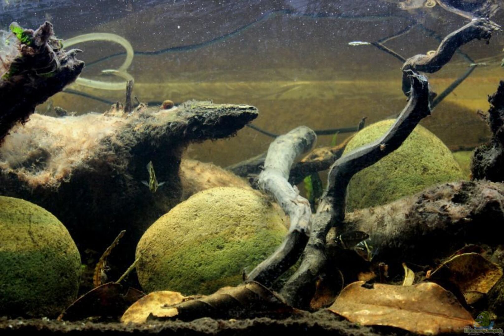 Tank Sirocco Glass of 8 mm, Front optical glass Lower frame: black aluminum Cover with transparent methacrylate Rear and side walls covered with brown cardboard 34 cm water column Effective volume 200 liters aprox. Objective: The wood has a major role in the chemistry of this aquarium. The wood is harvested from a continental Mediterranean climax forest of holm oaks. The tannins were diluted in the aquarium water to recreate the atmosphere of ecosystems of black water streams [...]