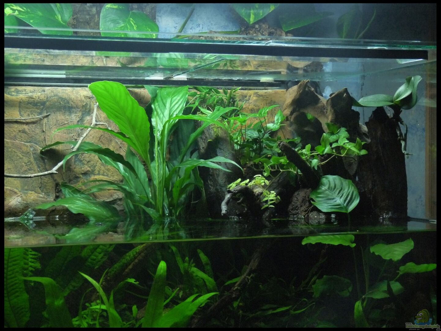 Nach Jahren im Bereich Südamerika und nur sehr mä??iger Bepflanzung wollte ich mal etwas ganz Neues machen. Habe daher die Einrichtungsbeispiele durchstöbert und bin beim Riparium von "serok" hängen geblieben. Gesagt, getan und so ist dann meine eigene Version eines Ripariums / Aquaterrariums entstanden. Wasserstand etwa 30cm, wieviel Wasser jetzt letztendlich im Becken ist, mag ich aber nicht einzuschätzen. Vermutlich irgendwas zwischen 150L und 200L. Aber das ist wirklich nur geschätzt. [...]