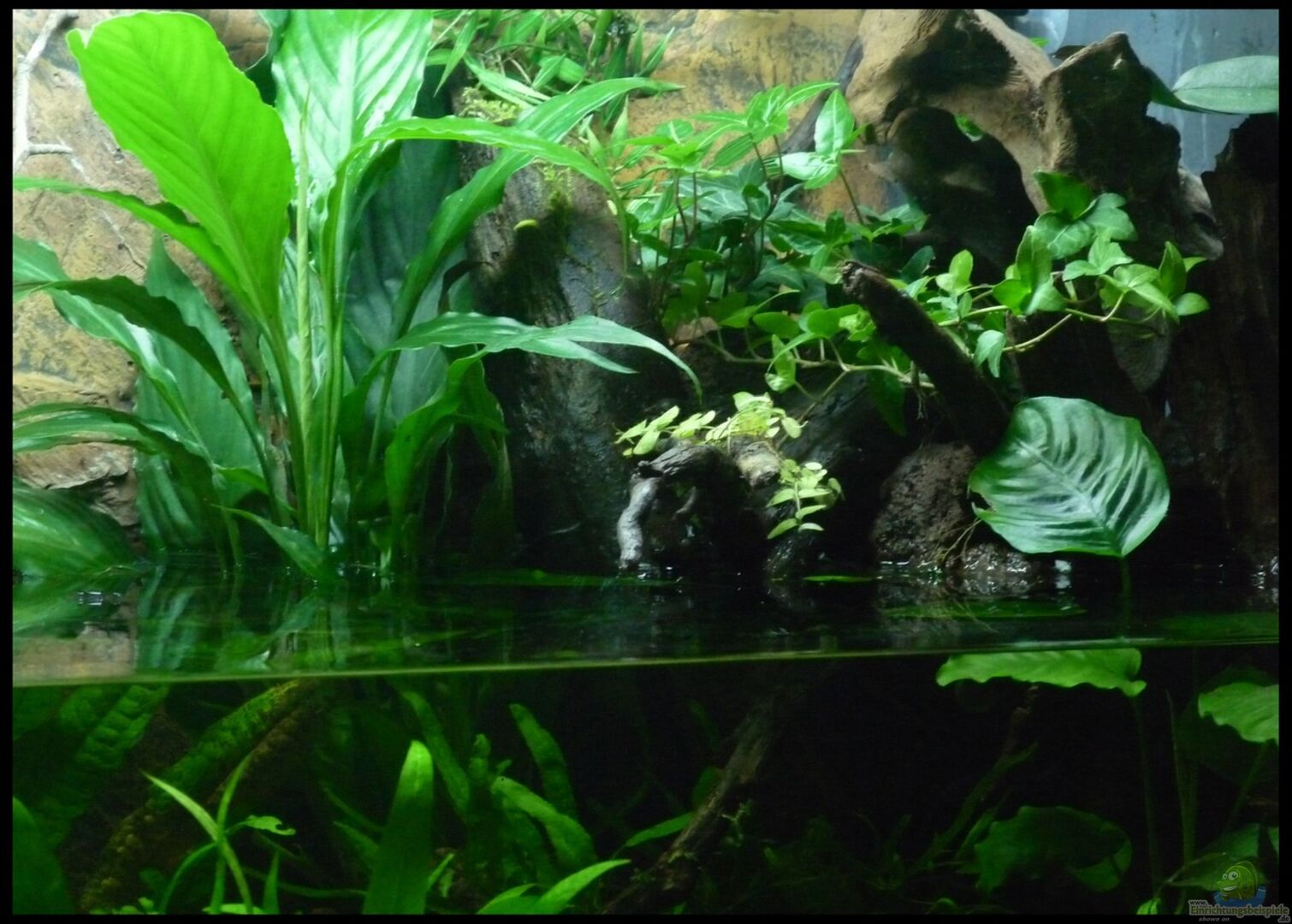 Nach Jahren im Bereich Südamerika und nur sehr mä??iger Bepflanzung wollte ich mal etwas ganz Neues machen. Habe daher die Einrichtungsbeispiele durchstöbert und bin beim Riparium von "serok" hängen geblieben. Gesagt, getan und so ist dann meine eigene Version eines Ripariums / Aquaterrariums entstanden. Wasserstand etwa 30cm, wieviel Wasser jetzt letztendlich im Becken ist, mag ich aber nicht einzuschätzen. Vermutlich irgendwas zwischen 150L und 200L. Aber das ist wirklich nur geschätzt. [...]