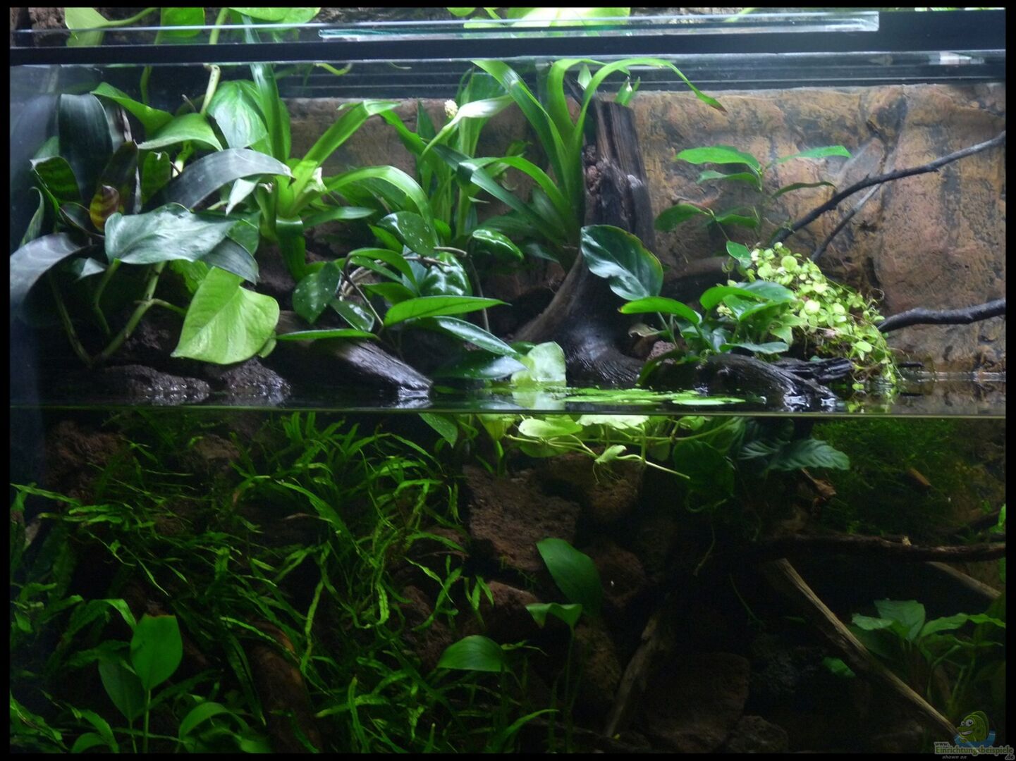 Nach Jahren im Bereich Südamerika und nur sehr mä??iger Bepflanzung wollte ich mal etwas ganz Neues machen. Habe daher die Einrichtungsbeispiele durchstöbert und bin beim Riparium von "serok" hängen geblieben. Gesagt, getan und so ist dann meine eigene Version eines Ripariums / Aquaterrariums entstanden. Wasserstand etwa 30cm, wieviel Wasser jetzt letztendlich im Becken ist, mag ich aber nicht einzuschätzen. Vermutlich irgendwas zwischen 150L und 200L. Aber das ist wirklich nur geschätzt. [...]