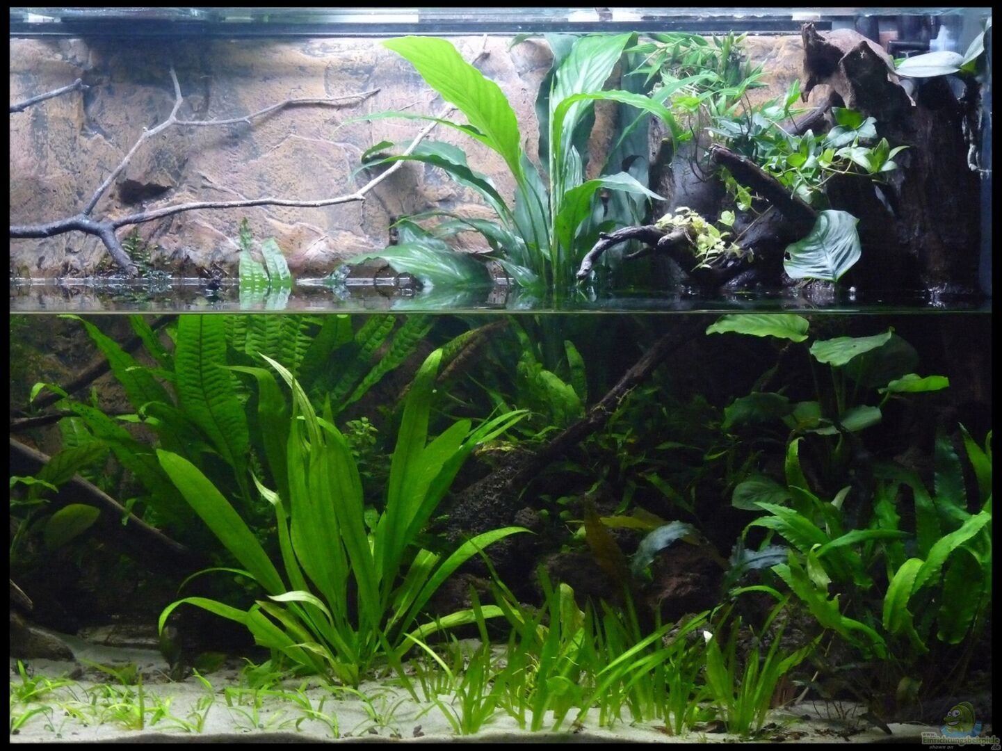 Nach Jahren im Bereich Südamerika und nur sehr mä??iger Bepflanzung wollte ich mal etwas ganz Neues machen. Habe daher die Einrichtungsbeispiele durchstöbert und bin beim Riparium von "serok" hängen geblieben. Gesagt, getan und so ist dann meine eigene Version eines Ripariums / Aquaterrariums entstanden. Wasserstand etwa 30cm, wieviel Wasser jetzt letztendlich im Becken ist, mag ich aber nicht einzuschätzen. Vermutlich irgendwas zwischen 150L und 200L. Aber das ist wirklich nur geschätzt. [...]