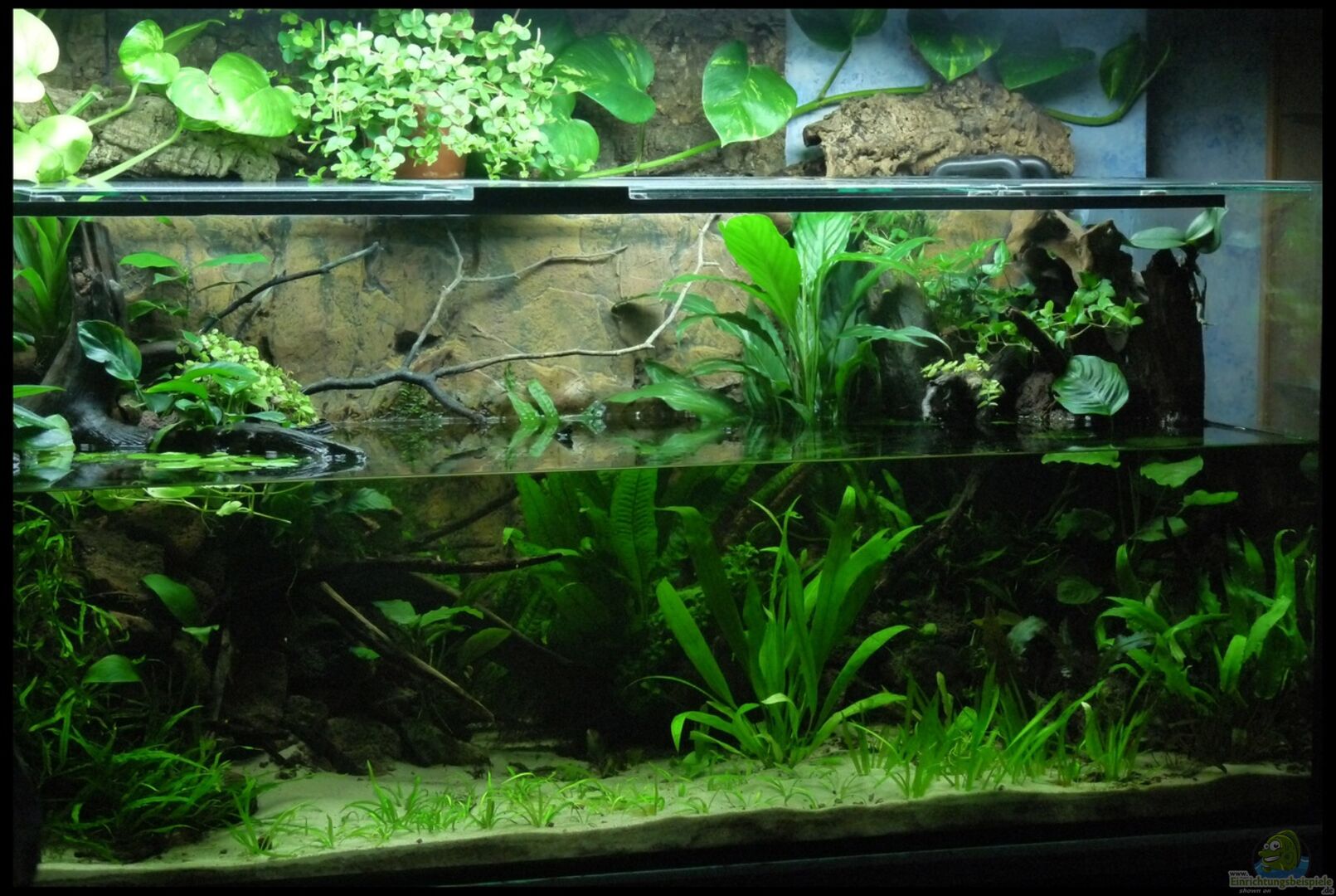 Nach Jahren im Bereich Südamerika und nur sehr mä??iger Bepflanzung wollte ich mal etwas ganz Neues machen. Habe daher die Einrichtungsbeispiele durchstöbert und bin beim Riparium von "serok" hängen geblieben. Gesagt, getan und so ist dann meine eigene Version eines Ripariums / Aquaterrariums entstanden. Wasserstand etwa 30cm, wieviel Wasser jetzt letztendlich im Becken ist, mag ich aber nicht einzuschätzen. Vermutlich irgendwas zwischen 150L und 200L. Aber das ist wirklich nur geschätzt. [...]