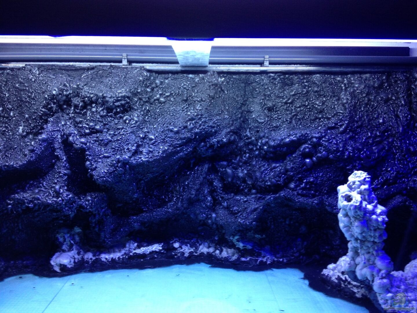 Rückwand ist ein Eigenbau aus Glasfaser, Polyesterharz und Reef Scape Foam Beim Thema Rückwandbau im Meerwasser scheiden sich die Geister. In dutzenden Foren gibt es hunderte Meinungen, Erfahrungen und Tips. Hier ist meine kostengünstige Alternative zu teurer und schwerer Riffkeramik. Mein Ziel: Gestaltung eines Riffhangs aus erkalteter Lava am Rande eines Vulkans. Der Zulauf ist im Becken als Unterwassergeysir getarnt. -Doppelwandiger ??berlaufschacht und 4 Bohrungen 1) [...]