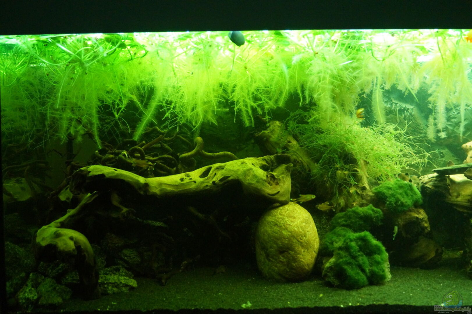 Aquariumrückwand wurde aus Styrodur und Acrylfarben gemacht und hinter der AQ Rückwand aufgestellt