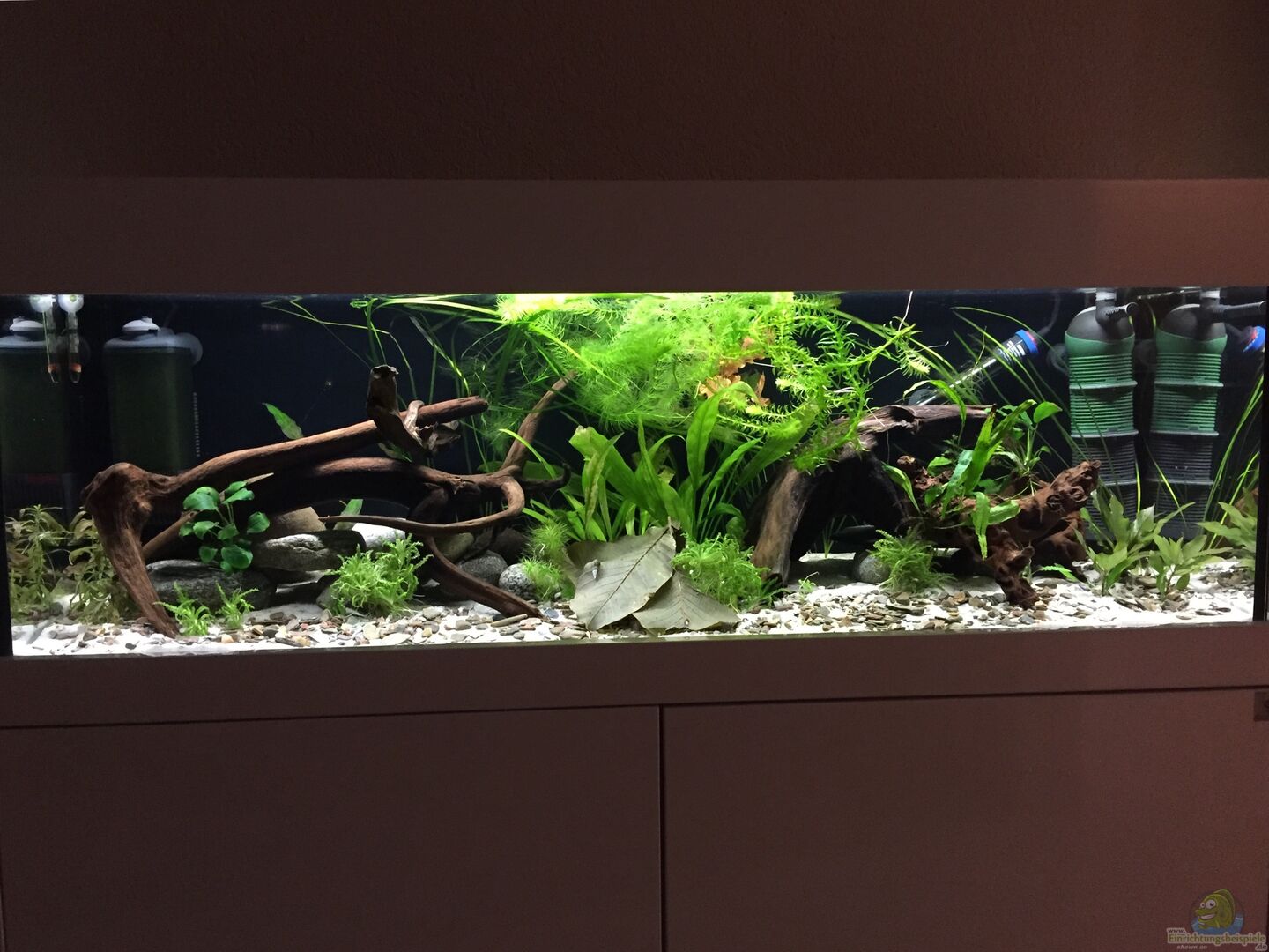 Massaquarium mit Optiwhiteglas auf 3 Seiten. Das Möbel dazu wurde bereits mit einer passenden Kiesblende von 5cm auf drei Seiten gebaut. Die Rückwand ist aussen mit einer schwarzen Folie beklebt und es gibt dadurch eine optische Tiefenwirkung.