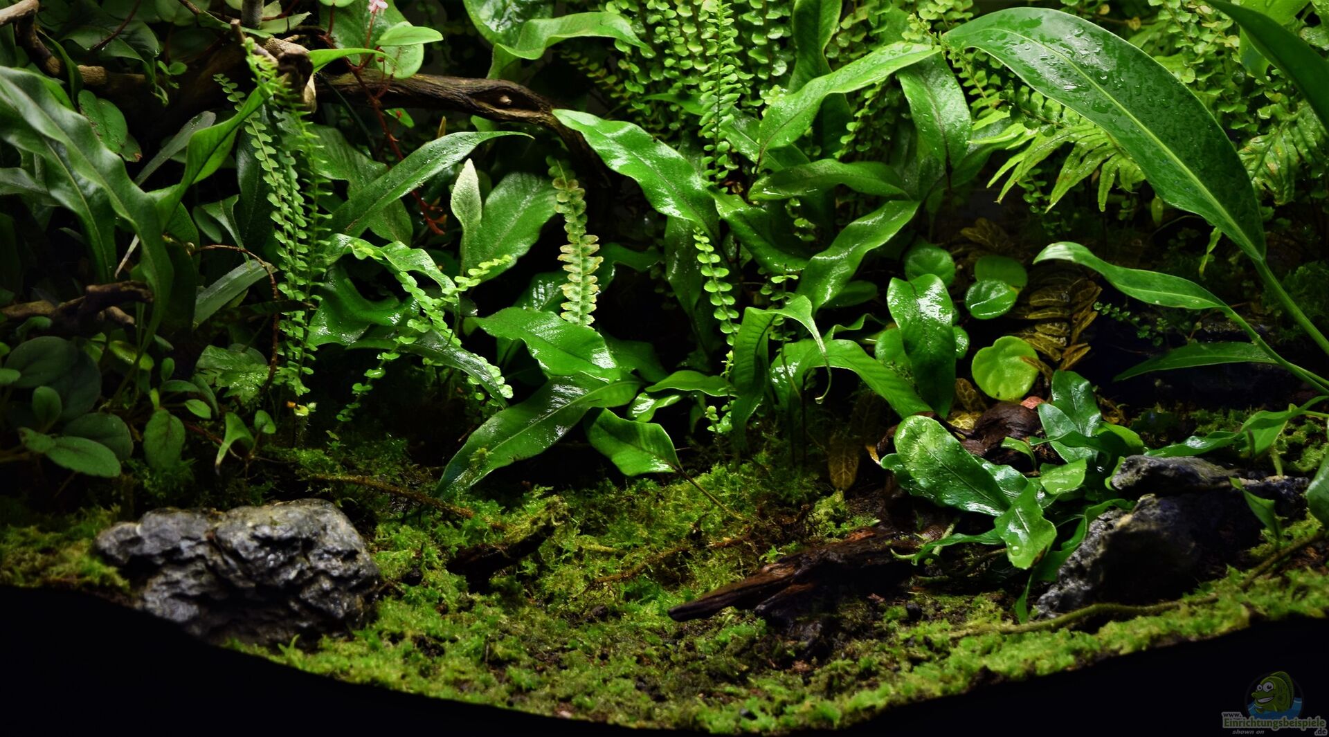 Die Besonderheit liegt darin, dass hier ein Aquarium als Terrarium gestaltet wird. Da kein Luftaustausch von unten nach oben durch Lüftungsschlitze stattfinden kann, wird hier mit PC-Lüftern gearbeitet, um dies zu bewerkstelligen. Der Gedanke war, freie Sicht auf das Terrarium zu haben, ohne störende Schiebscheiben, Lüftungsschlitze o.ä.