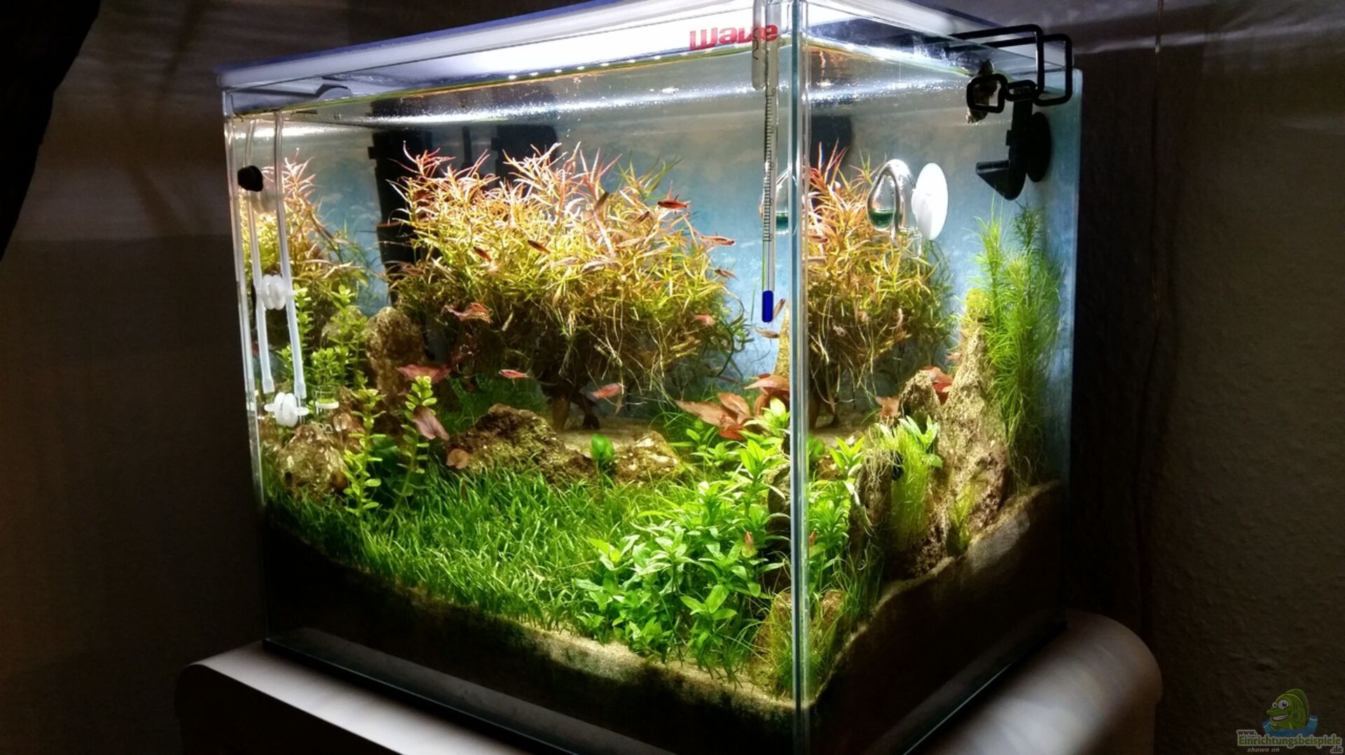 ???Selbst gebaute Aquarium Abdeckung. ???Aquarium Unterbau in wei??, Cube form, Ma??e B:43 H:43 T:35 ??? Hintergrund Wolken und Transparent Wei??e Folie kompiniert