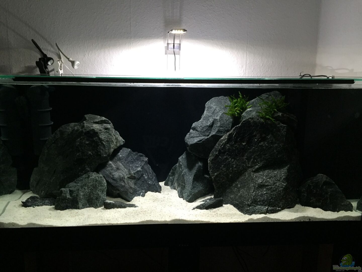 Das Becken wurde gebraucht für 30 euro erworben, es wurde vorher nur als Filterbecken genutzt. Auf dem Aquarium habe ich zwei Abdeckscheiben die jeweils aus zwei verklebten Scheiben bestehen damit sie stabiler sind. Den Unterschrank habe ich komplett selber gebaut. Der tragende Teil besteht aus zwei 14mm starken Multiplexplatten die mit 6 technisch getrockneten Vollholzbalken mit einem Querschnitt von 10x10 cm verschraubt sind. Auf dem Becken liegt eine 2 cm starke XPS Platte und unter [...]