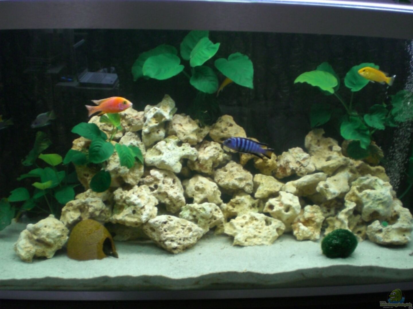 Aquarium Kombination Osaka Das Aquarium hat vorne keine Ecken, weil die Vorder- und Seitenscheiben aus einer gebogenen Scheibe bestehen, deswegen kann man von vorne auch keine lästigen schwarzen Silikonnähte sehen.