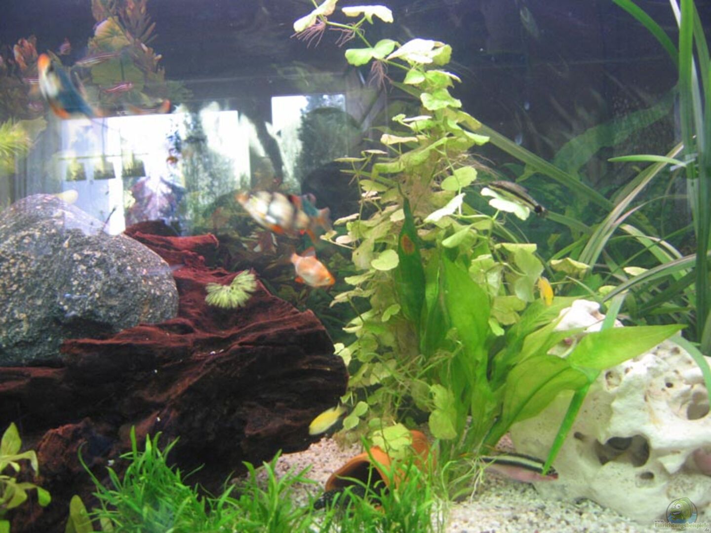 5 Neon Regenbogenfische, 4 Rote Fadenfische, 2 Purpurprachtbarsche, 9 Zebrabärblinge, 2Yellow´s , 2 Panzerwelze und 3 Antennenwelze.Meine Moosbarben und Sumatrabarben habe ich im Handel leider abgeben müssen da Sie sehr angriffslustig waren und alle anderen Fische angeknabbert haben bzw. hatten.