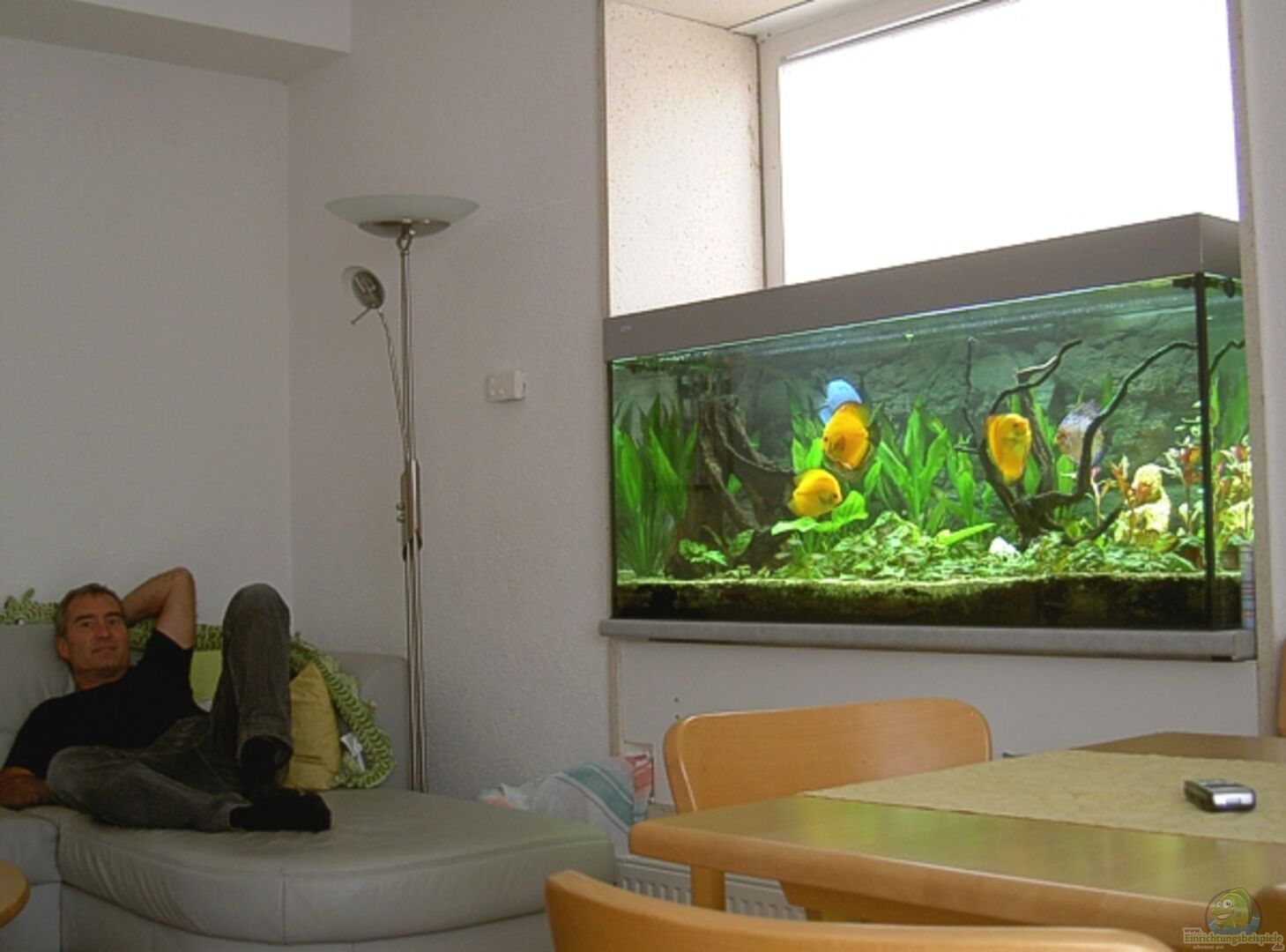 Das Becken steht auf einem Untergestell aus Alu-Profilen von mir selber zusammengebaut.
