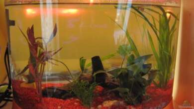 Halbrundes Becken aus PVC, aufgestellt im Raumteiler und von beiden Seiten anschaubar