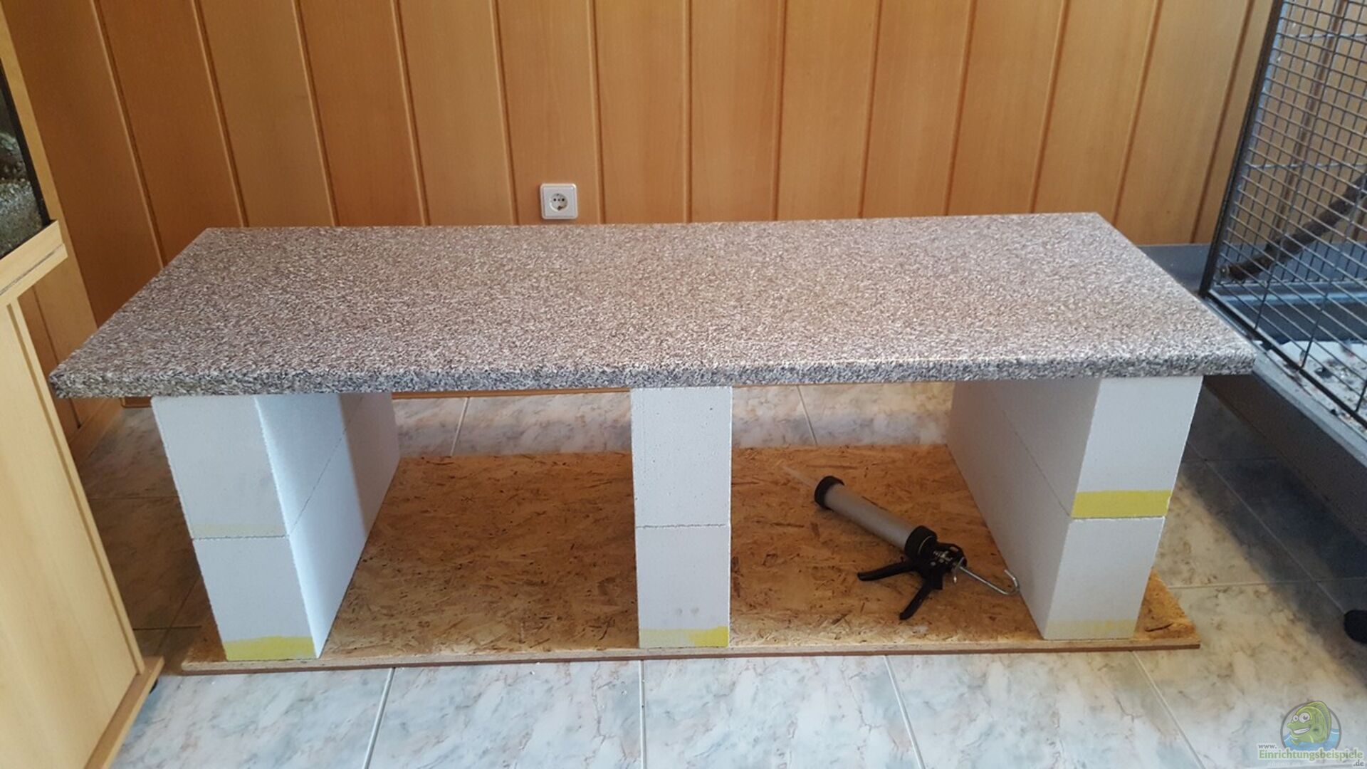 Aquarium ist aus 12 mm Floatglas Sto??verklebt Die Rückseite habe ich mit schwarzer Folie abgeklebt, für bessere Tiefenwirkung. Da das Aquarium leider keine Abdeckung hatte, wurde 2 Plexiglas Scheiben mit je einer Bohrung zum anheben drauf platziert. So verhindere ich auch das es im Zimmer zu einer hohen Luftfeuchtigkeit kommt und das Wasser verdunstet auch nicht so schnell. Den Unterbau habe ich aus 6 Stück Gasbeton Steinen, einer 1 cm dicken OSB Platte als Boden, darunter wurden [...]