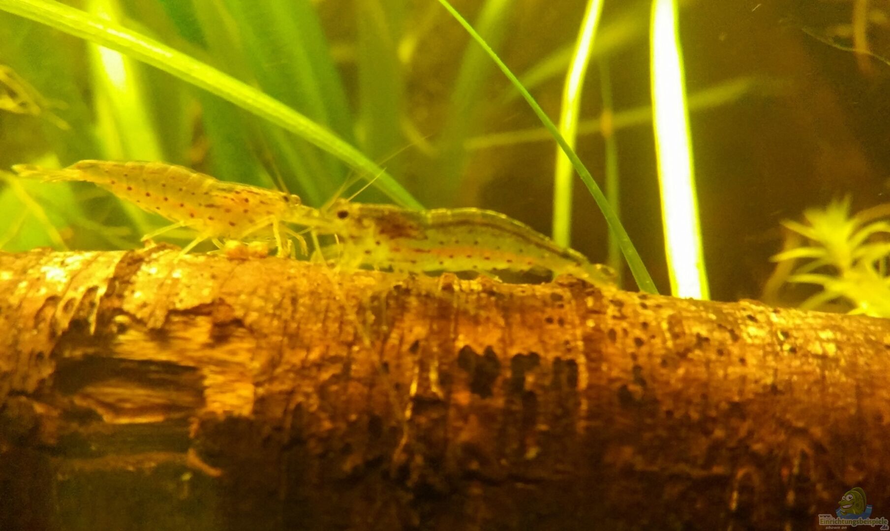 Es sollten Tiere sein, die sich zum Einen in einem Schwarzwasser-Becken mit Zimmertemperatur wohlfühlen, als auch meine schon vorhandenen Armanos und Perlhühner aufnehmen kann. Alle Tiere sind in etwa gleich gro?? und sind für ein friedliches Wesen bekannt. Daher folgender Besatz: 25 Neonsalmer, 8 Perlhunbärblinge (eigene Nachkommen), 4 Armanogarnelen aus meinem Garnelenbecken, Posthornschnecken, Geweihschnecken. Nach 2 Monaten Laufzeit des Beckens habe ich nun auch 6 Ohrgitterharnischwelse dazugesetzt. [...]