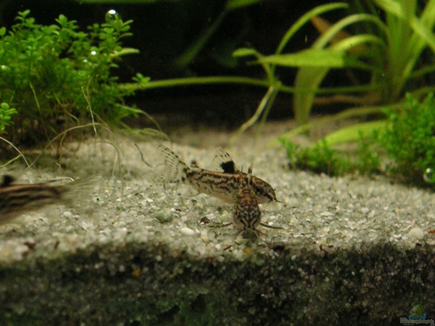 4 Rennschnecken (Neritina) 5 Amano-Garnelen (Caridina multidentata) 11 Zwerg-Schmerlenpanzerwelse (Aspidoras pauciradiatus) 3/3 Gabelschwanz-Blauaugen (Pseudomugil furcatus) + 2/1 Nachwuchs