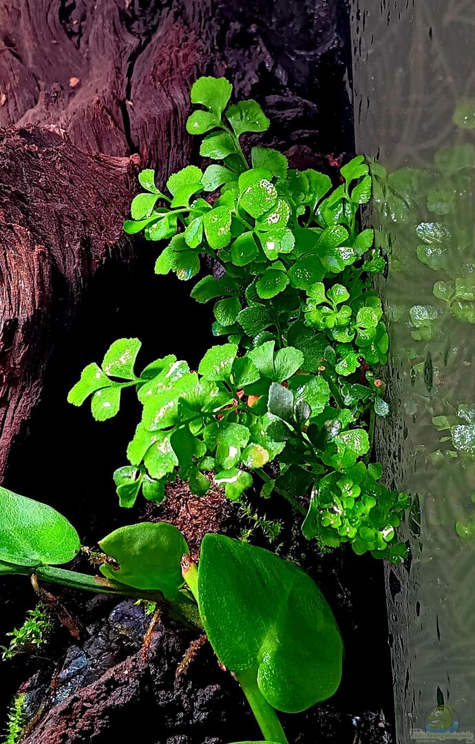 Neoregelia Atlantis, Asplenium ruta-muraria, Ophiopogon japonicum, Pleurothalis fusca, Humata heterophylla Ableger von Raphiodophora hayi, Marcgravia umbellata, Begonia schulzii, Ficus scandens, Microgramma vaccinifolium