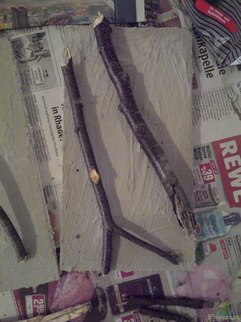 Wurzelholz Kieselfindlinge Seemandelbaumblätter Das Becken wird in nächster Zeit mit einer selbstgebastelten Rückwand ausgestattet.