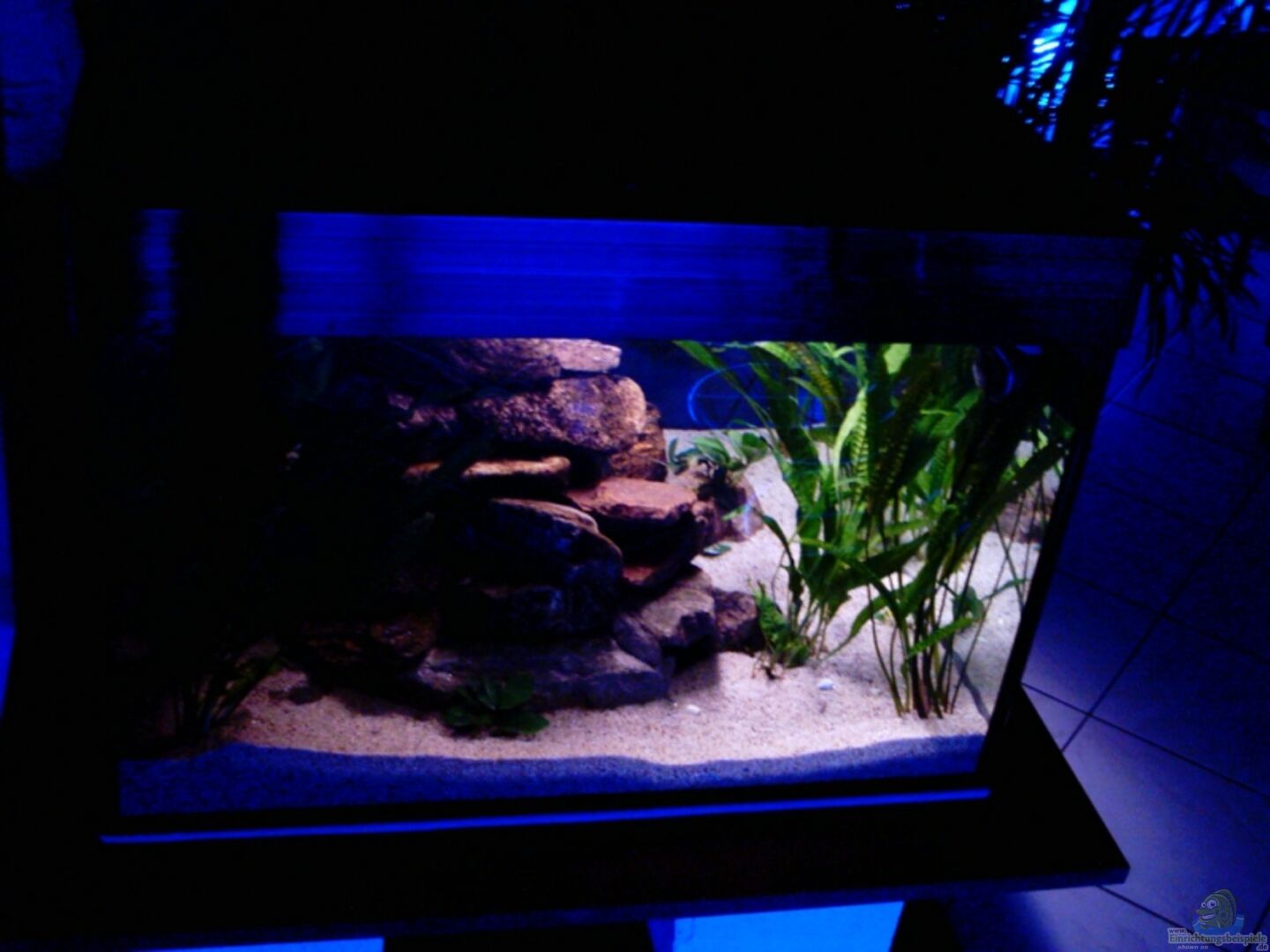 Glasstärke 10 mm Kanten geschliffen und poliert, sto??verklebt. Abdeckung: Aluprofil schwarz Unterbau aus Schalenholzplatten und Ytongsteinen. Unter dem Becken und der Bodenplatte je eine 10mm Plastazoteplatte als Unterlage. 8mm Plexiglasscheiben als Bodengrund zum Schutz der Glasscheibe.