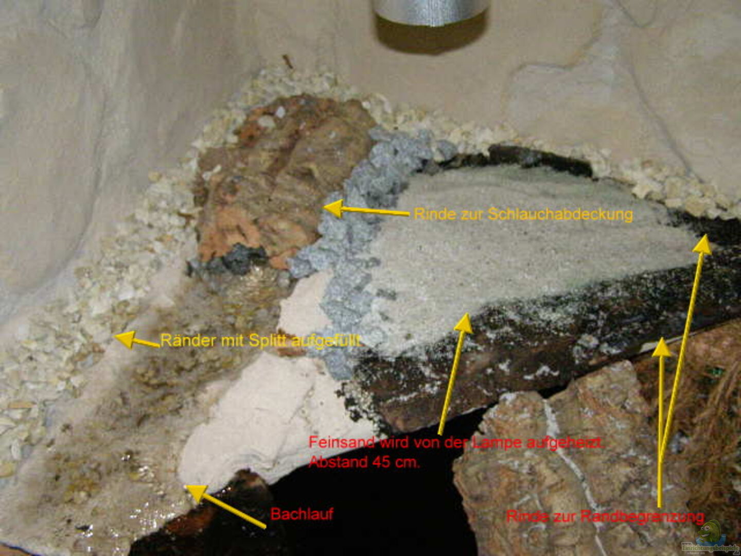 Selbst entworfen und gefertigt. Holzständerwerk mit Stryropor ausgekleidet und mit Deckplatten versehen und verstärkt. Von Au??en eine 1 mm dicke Teichfolie gelegt und von Innen mit einer Kautschukfolie ausgekleidet. (Doppelter Schutz) In Front mit einer Mauer versehen und diese mit Natursteinen verblendet. Fliesen und Holz runden das Bild dementsprechend ab.