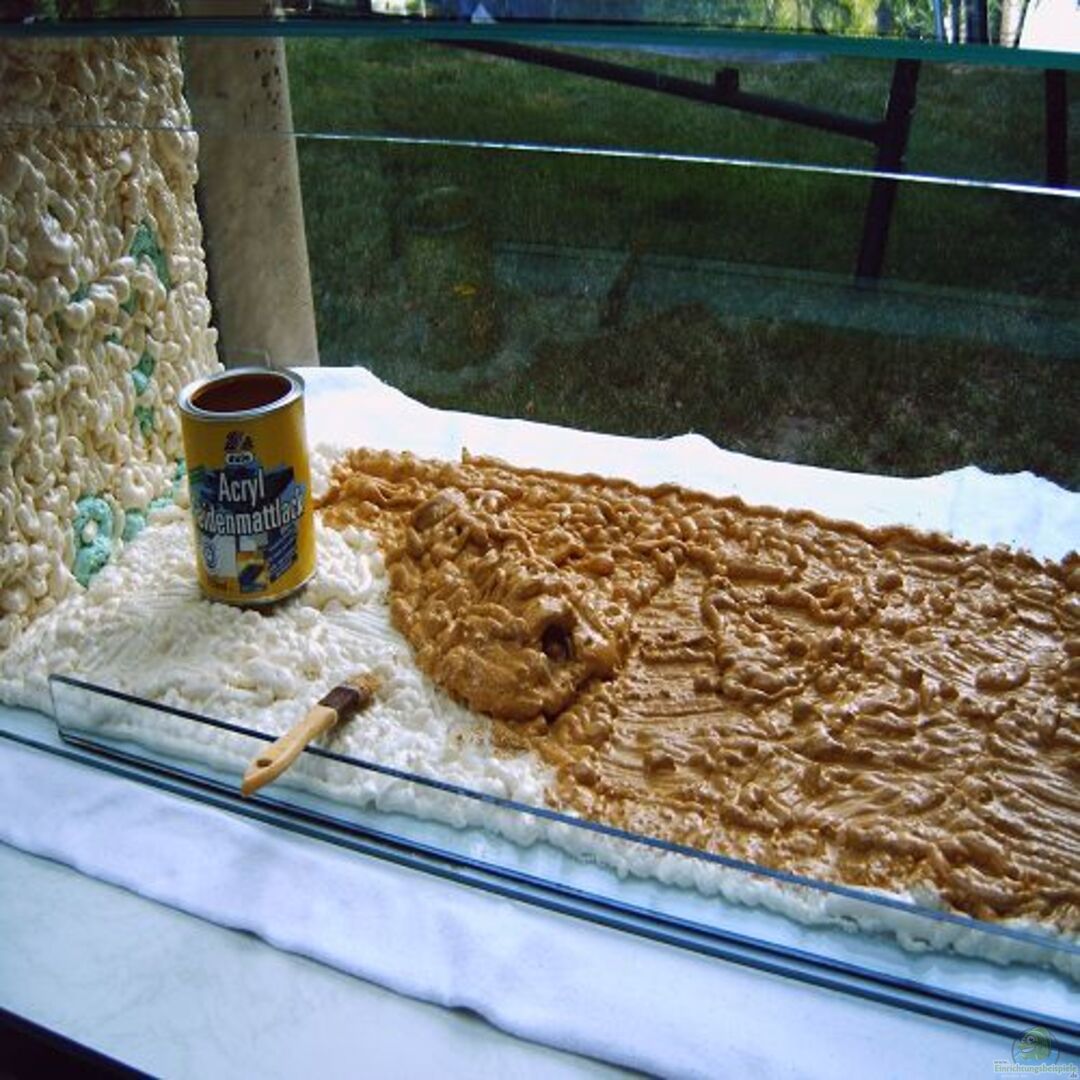 Rückwand aus Schaum selbst hergestellt, Höhle mit 3 Ausgängen integriert