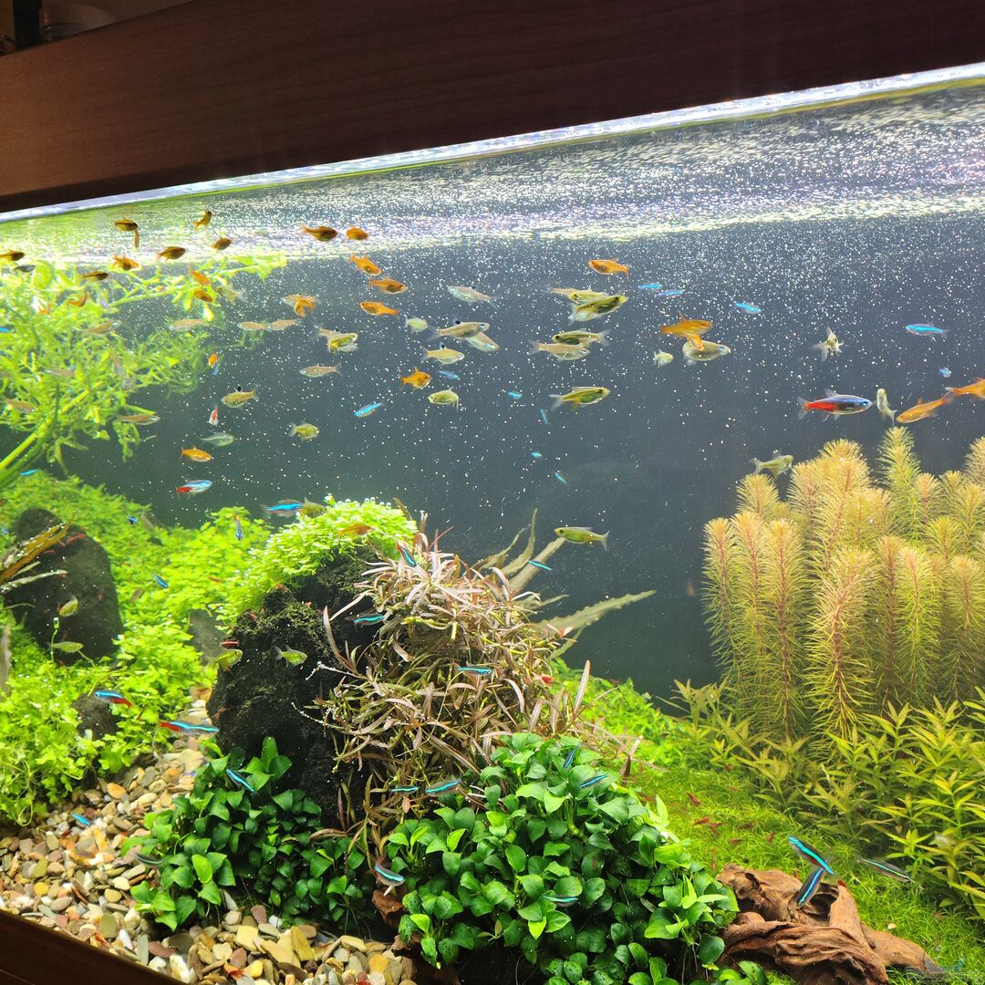 Stand: 21.12.2025 - ca. 70 - 80 blaue Neonsalmler - ca. 12 Neontetra - ca. 50 Augenfleckbärblinge - ca. 50 Funkensalmler (auch Feuersalmler genannt) - ca. 30 Microdevario kubotai - 6 Otocinclus sp. (hoppei?) - ca. 15 Amanogarnelen - unzählige Neocaridina davidi rot - Geweihschnecken - Stahlhelmschnecken -> als Beifang aus dem Handel habe ich 2 Querstreifenbärblinge dabei, die sehr hübsch sind (werde ich vermutlich aufstocken).